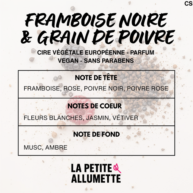Elle marie la gourmandise de la framboise noire et la vivacité du poivre.